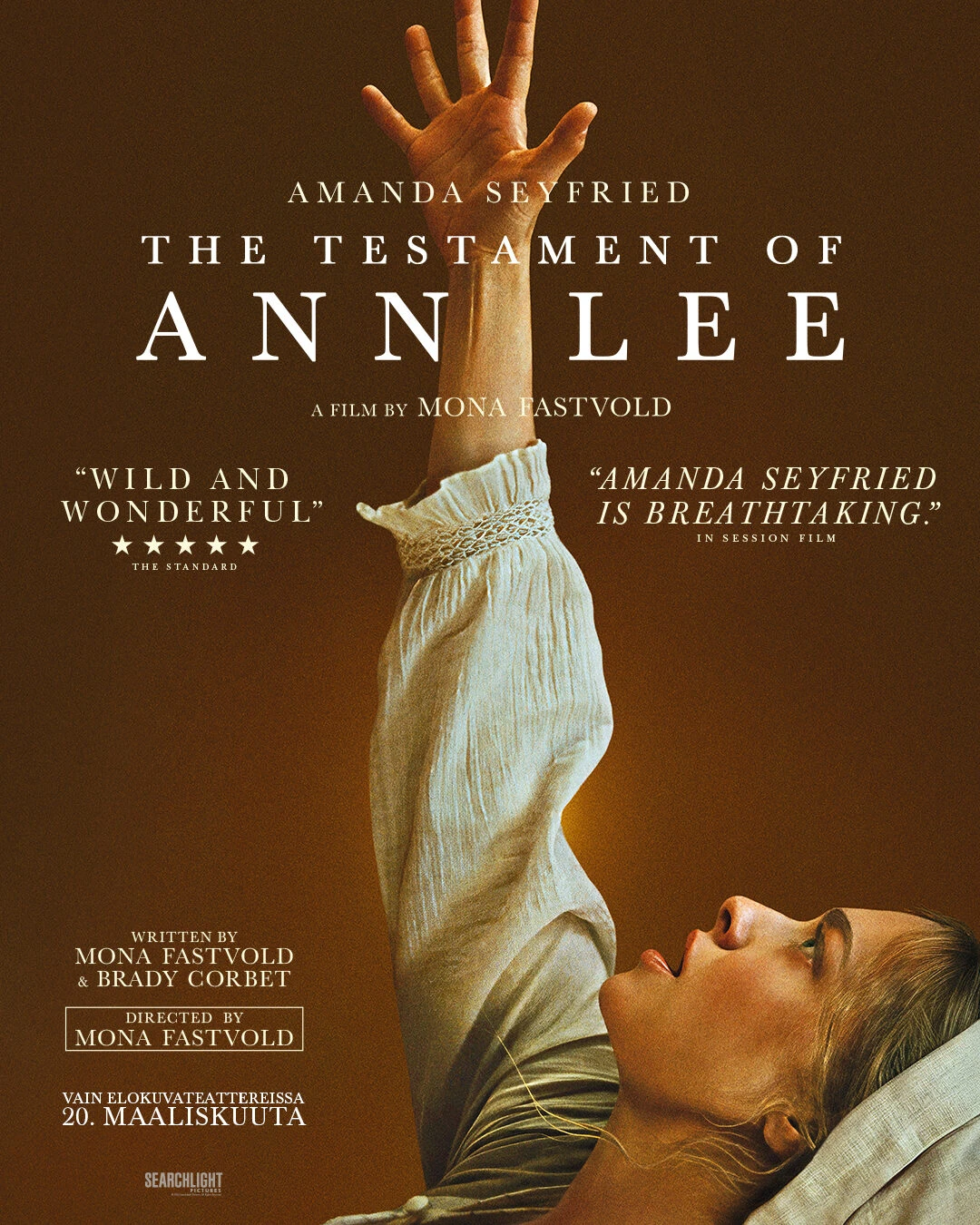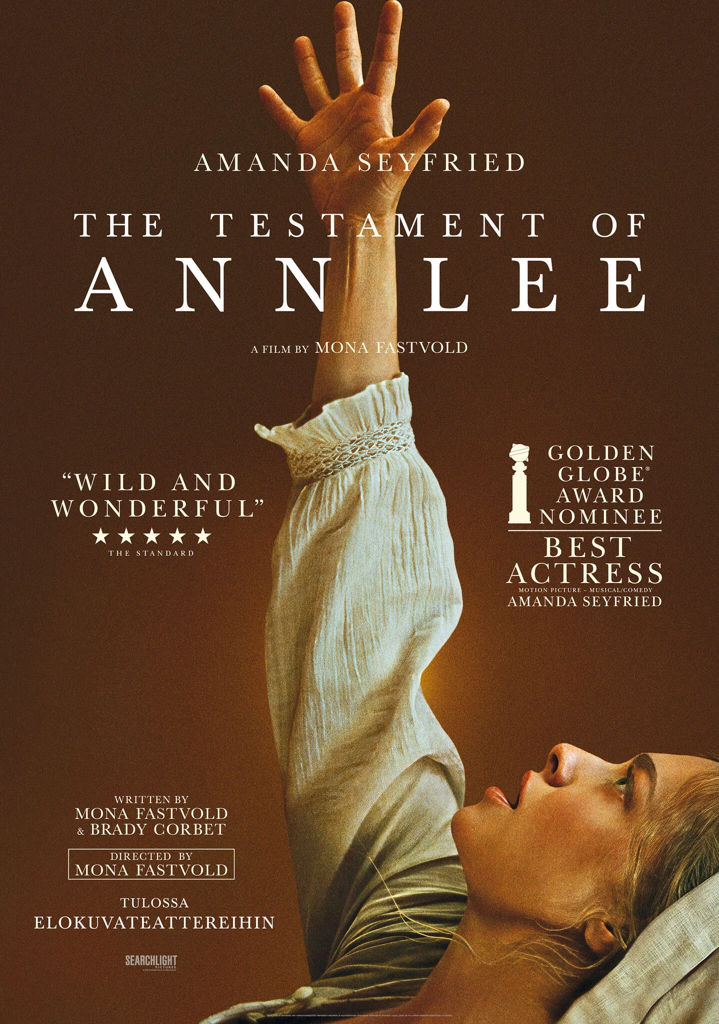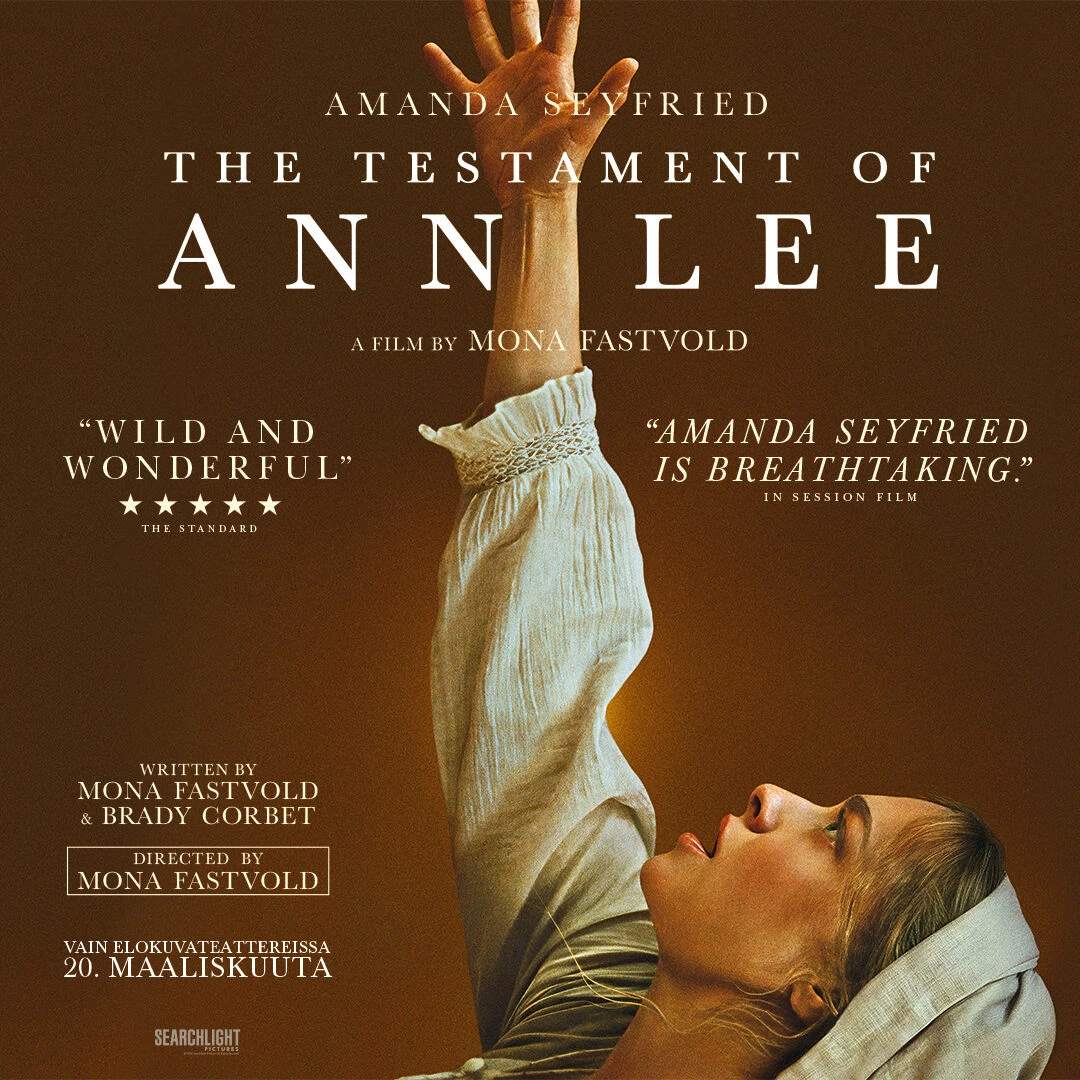 Oscar-palkitulta käsikirjoittaja-ohjaaja Mona Fastvoldilta (The World to Come, The Brutalist) tulee elokuva Shakers-lahkon perustajan Ann Leen hämmästyttävästä legendasta. Oscar-ehdokas Amanda Seyfried nähdään pääroolissa lahkon intomielisenä johtajana, joka saarnasi sukupuolten tasavertaisuuden ja sosiaalisen tasa-arvon puolesta ja jota hänen seuraajansa palvoivat. The Testament of Ann Lee tuo ilmi sen palon ja tuskan, jolla hän utopiaansa rakensi, ja mukana kuullaan toista kymmentä perinteistä Shaker-laulua, joita täydentävät Celia Rowlson-Hallin (Vox Lux) koreografioihin perustuvat hurmahenkiset tanssit ja Oscar-voittaja Daniel Blumbergin (The Brutalist) elokuvaan säveltämät laulut ja musiikki.
